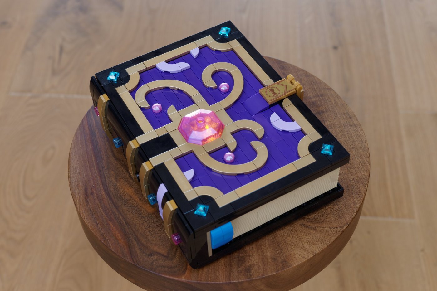 Pushing the bookmark inside the book turns the light bricks behind the gem on, pulling it turns them off.